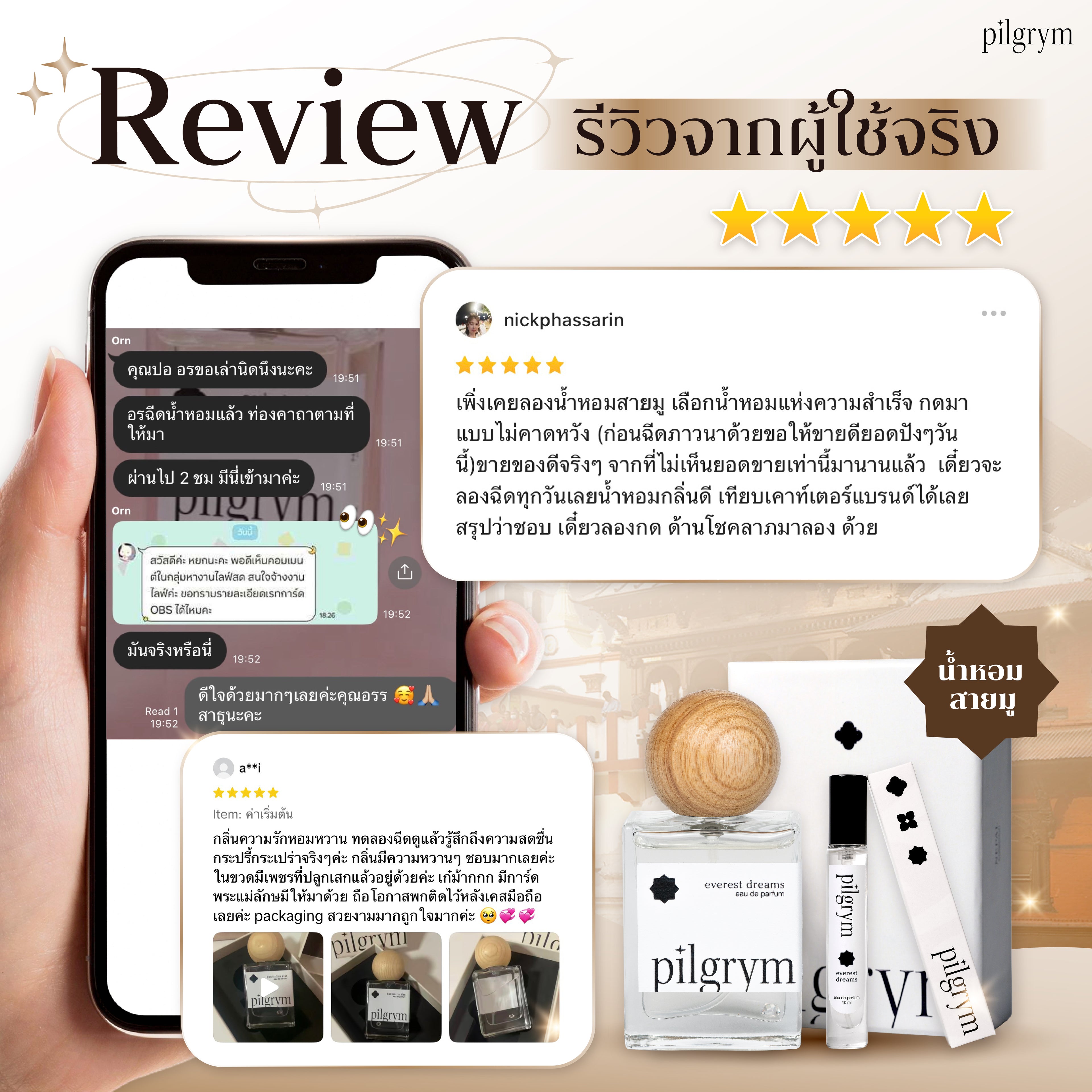 Pilgrym มาจากคำว่า Pilgrim ซึ่งมีความหมายว่าผู้เดินทางไปตามความเชื่อ เราเป็นแบรนด์น้ำหอมสายมูที่จะเดินทางไปยังสถานที่ศักดิ์สิทธิ์ต่าง ๆ นำความศักดิ์สิทธิ์กลับมามอบให้คุณผ่านน้ำหอม